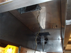 厨房にあるダクトの汚れは、衛生上に大きな問題があります。ダクト内は人の手が届きにくく、害虫やネズミなどが発生しやすい状況です。これは大変不衛生で、お客様が出入りする飲食店をこのような状態に放置していると、食中毒のリスクが飛躍的に高くなります。食中毒防止はもちろん、ダクト清掃によって店内の衛生状態を良好に保つことは、お客様に対する最大のサービスです。
